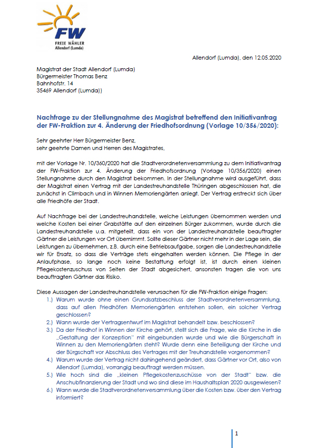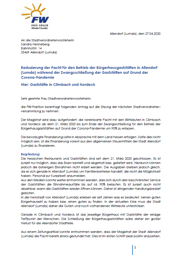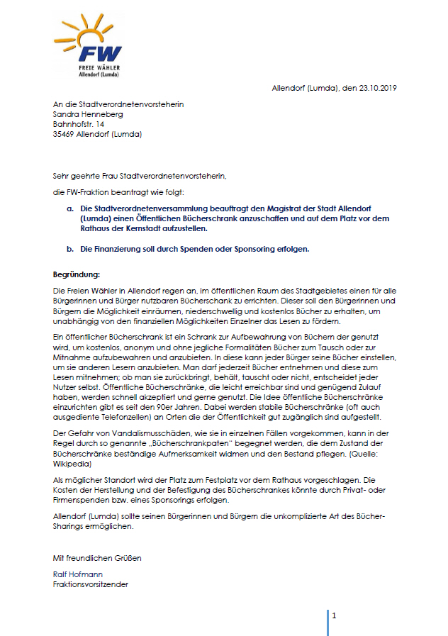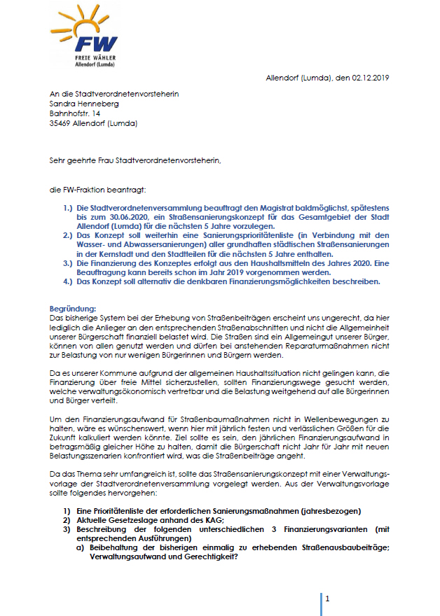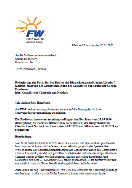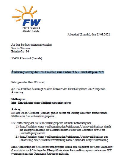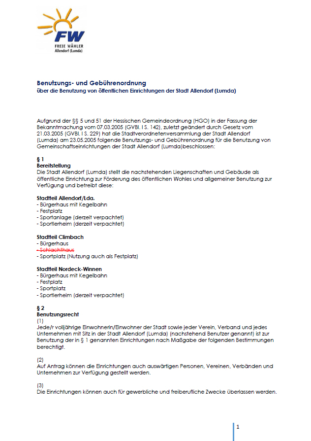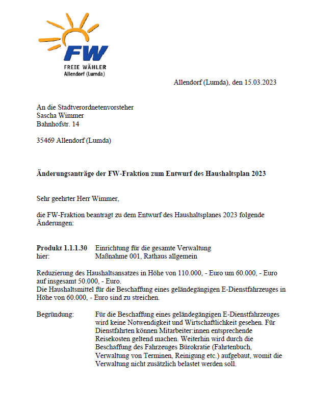 Hier finden Sie von den freien Wählern gestellte Anträge und sonstige Dokumente über unser Tun.