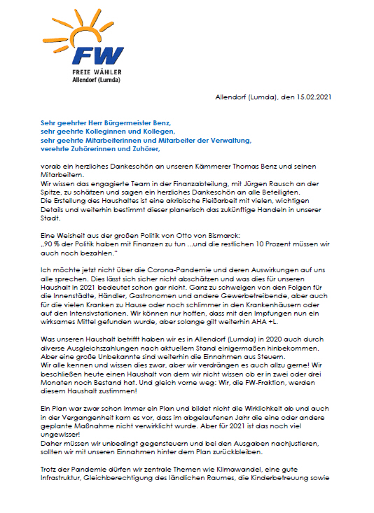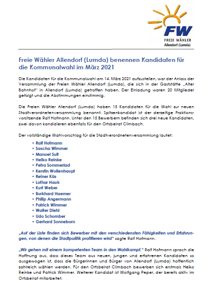 Ihre Freien Wähler Allendorf (Lumda)